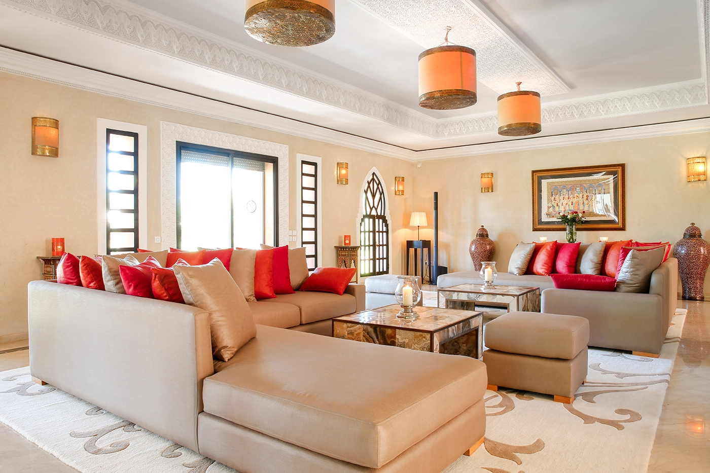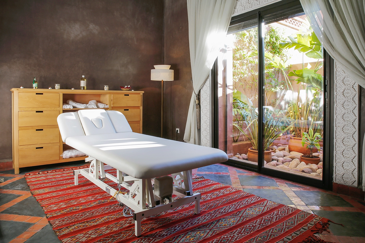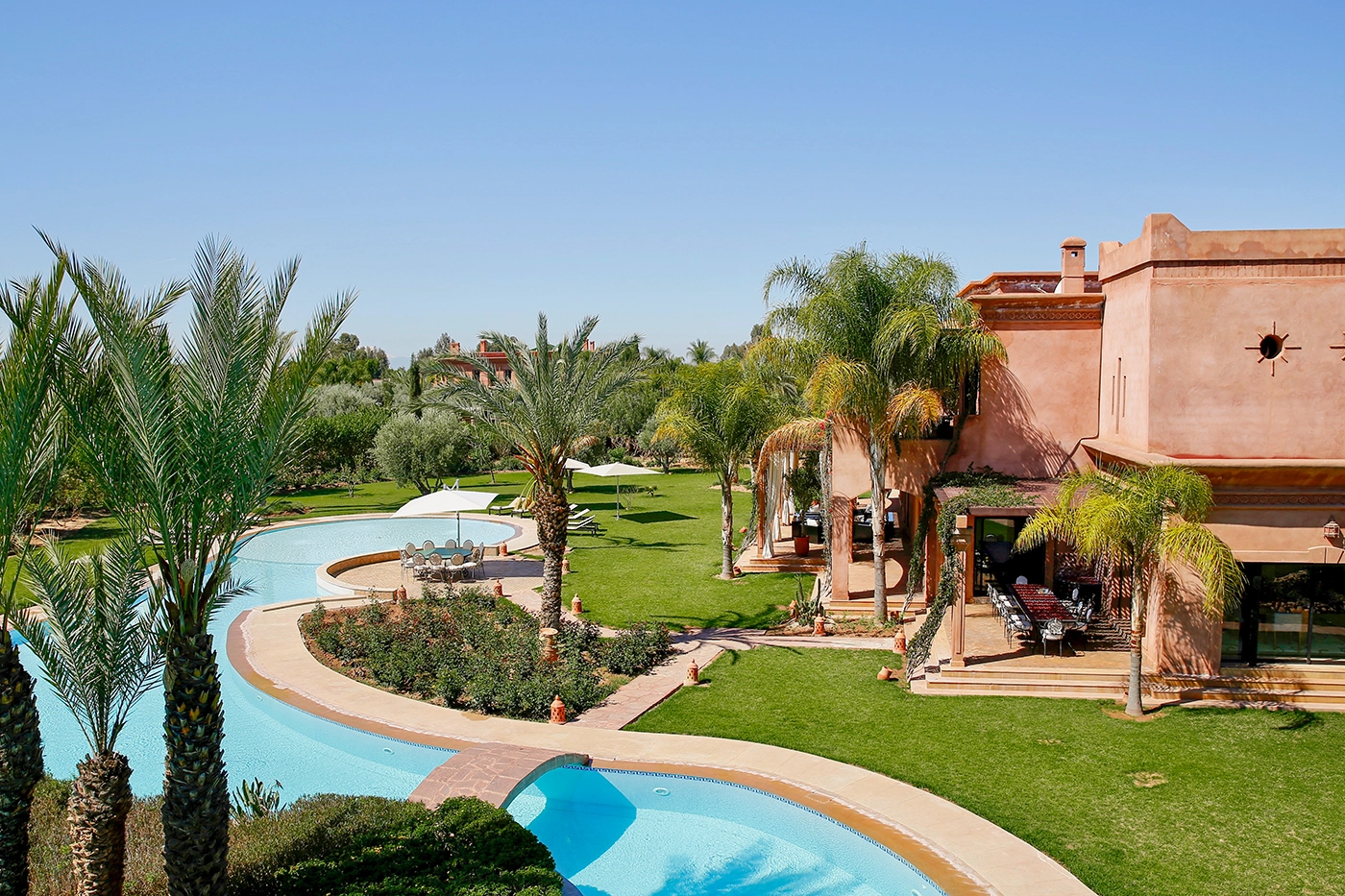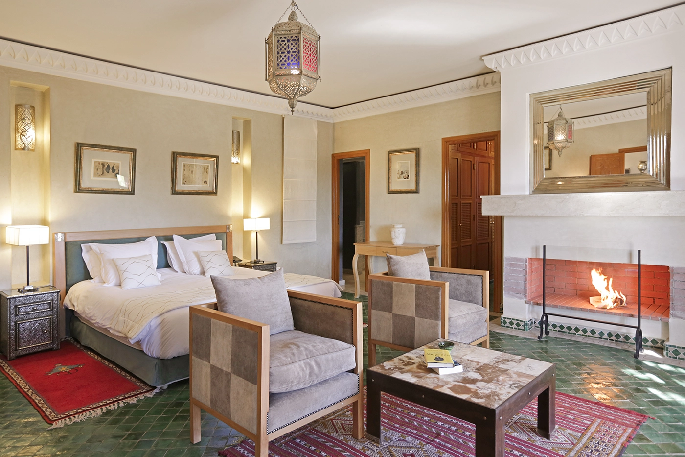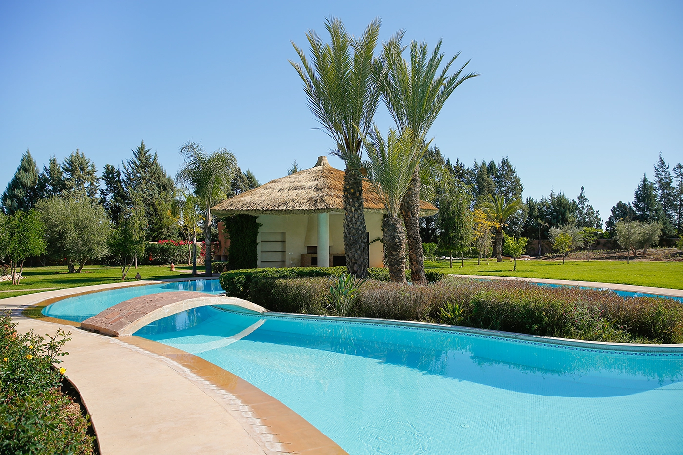 Take a break on the sun loungers, or settle by the aquatic bar of the pool house. For a break indoors, sink into the leather club chairs facing a wood chimney or the welcoming Moroccan living spaces of Villa Grace. Finish off the day, with a drink in hand, on the spacious terraces offering stunning views on infinite greenery and the Atlas peaks.The property also offers three stylish dining options; one indoor and two alfresco, overlooking the pool. In the same unwinding spirit, the property is able to offer a complete spa experience : sauna, hammam, jacuzzi, massage room.