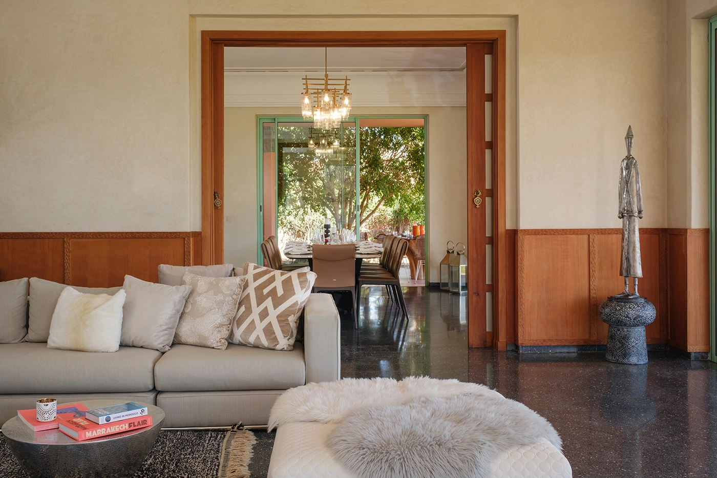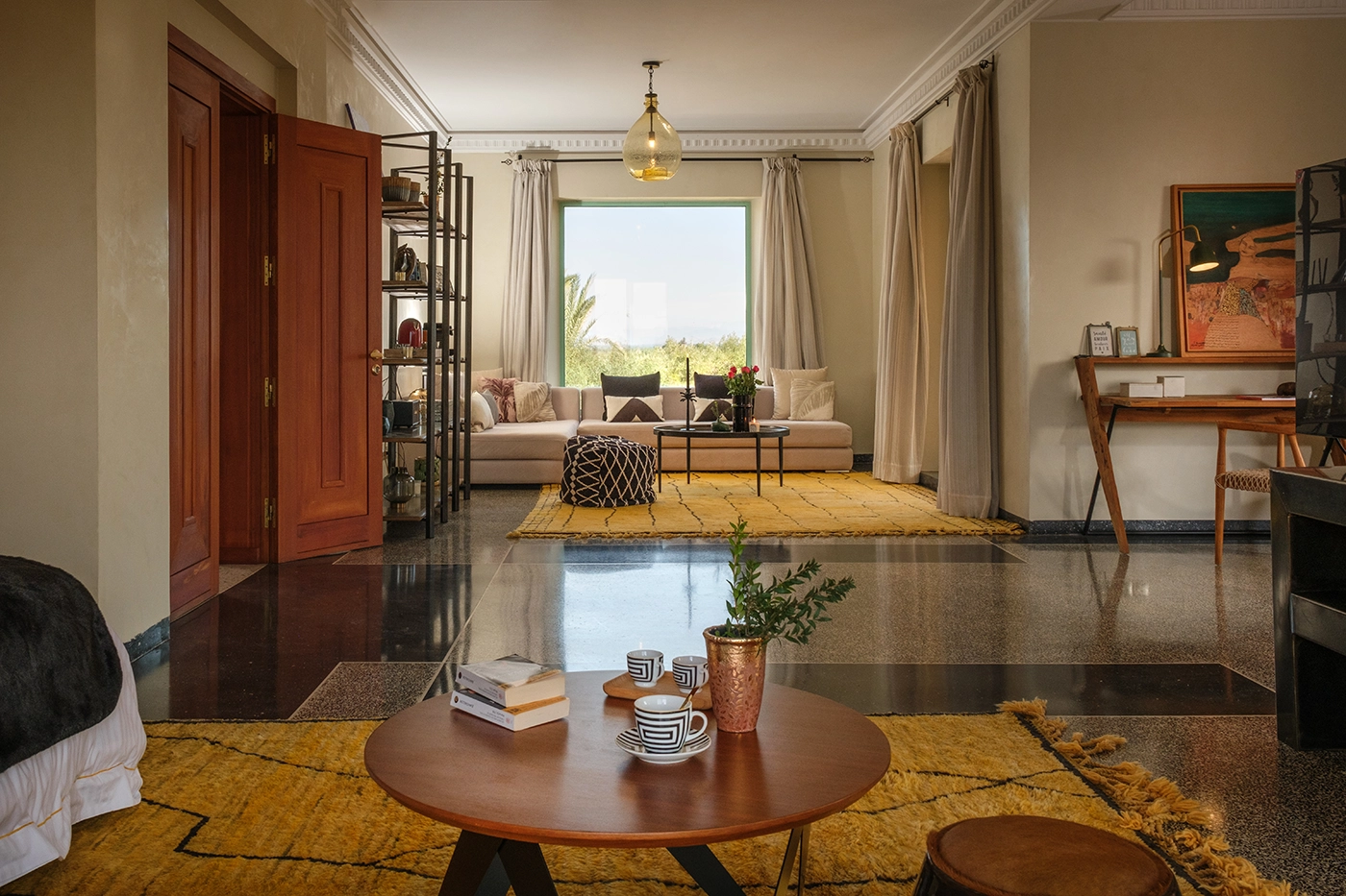 Villa Majdou is a true gem, located near the American School of Marrakech and just minutes from the city center. Set on a sprawling 10,000 m² estate, this exceptional property provides a peaceful and refined living experience. Upon arrival, you’ll be greeted by a meticulously maintained clay tennis court, illuminated for enjoyable evening matches.
