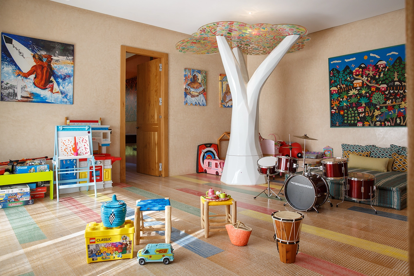 On the parents' side, three exceptional suites with as many attached bathrooms promise a luxurious stay. The spacious living areas include a home cinema and a game room equipped with a massive foosball table for hours of entertainment with loved ones.
