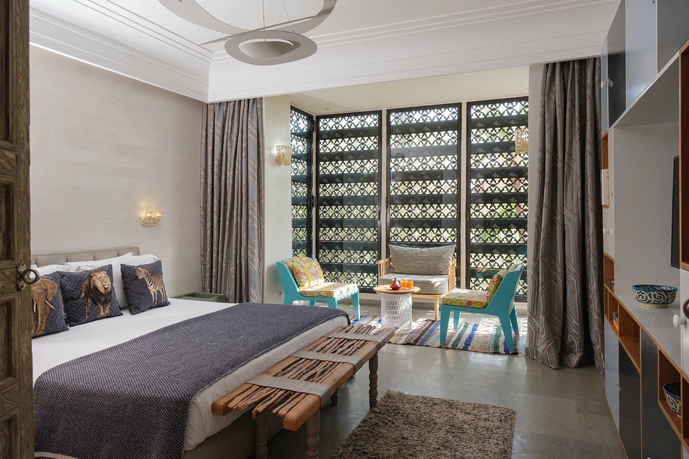 Villa Yenmoz is thoughtfully designed to provide a harmonious blend of Moroccan charm and modern luxury. Each room is adorned with handcrafted details, underfloor heating, and natural materials. Large windows invite in the Marrakech sunshine, while the mashrabiya offers a peaceful retreat with panoramic rooftop views.